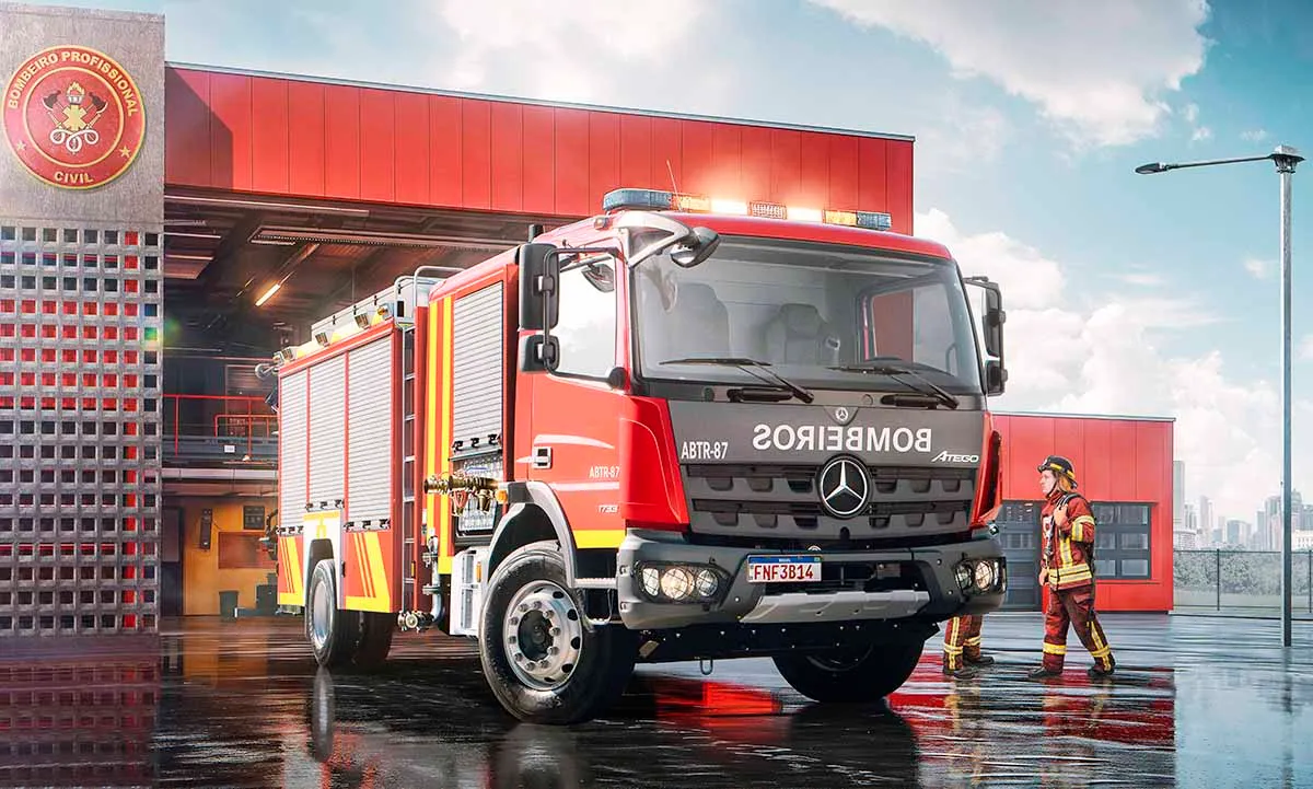 Com PBT de 17,1 ton e distância entre eixos de 4.800 mm, o novo Atego 1733 bombeiro vem equipado com o motor OM 926 LA de 6 cilindros e 7,2 litros. Este motor também atende ao Proconve P8 (Euro 6), oferecendo 321 cv de potência e 1.250 Nm de torque. Seu trem de força conta com caixa de mudanças automática Allison S3000 P de 6 velocidades, eixo traseiro Meritor 25.168 de uma velocidade e bloqueio de diferencial.