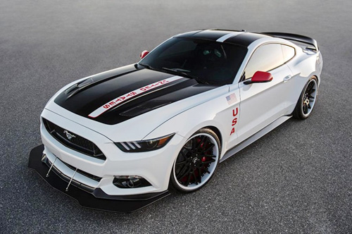 O Mustang Apollo Edition é um veículo verdadeiramente único, transformado pelos times de design e engenharia da Ford a partir do Mustang GT 2015 fastback para empolgar fãs e colecionadores. A carroceria com pintura branca brilhante especial exibe detalhes em preto, fazendo uma conexão criativa com o programa Apollo da NASA. Ele traz difusor dianteiro de fibra de carbono, aerofólio traseiro e iluminação em LED sob o assoalho para simbolizar a reentrada da nave na atmosfera.