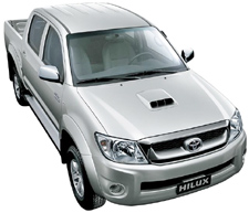 A Hilux 2009 chega com visual mais atraente e robusto. Além das mudanças no design, como nova grade frontal, pára-choque, lentes dos faróis e rodas 16” em algumas versões, a picape passa a ser oferecida com motor 2.7 16V a gasolina, com peço sugerido de R$ 79.600. Seu pára-choque tem formato mais saliente.