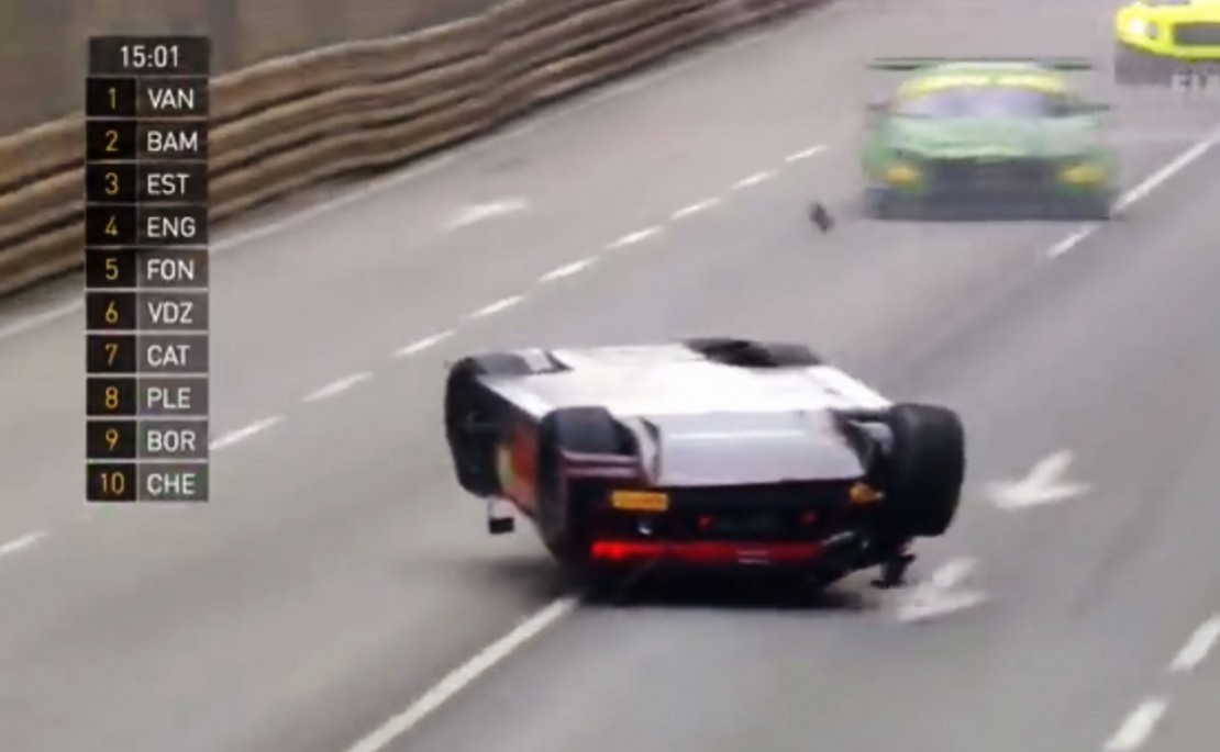 Uma situação bizarra foi registrada no Grande Prêmio de Macau da FIA GT Word Cup. No último instante da corrida o piloto Laurens Vanthoor acabou capotando sozinho o Audi R8 LMS que pilotava. Veja o vídeo abaixo!