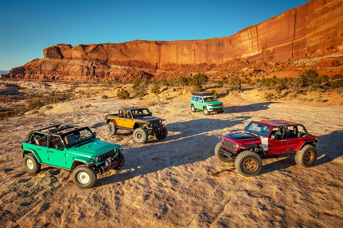 Os carros-conceito apresentados no Easter Jeep Safari 2024 incluem: