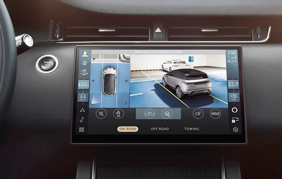 Após a sua introdução no Novo Range Rover Velar, o Range Rover Evoque apresenta a tecnologia de infoentretenimento Pivi Pro de última geração. Os controles de clima, assento e volume de áudio são sempre visíveis por meio de novas barras laterais, com controles deslizantes multifuncionais em ambos os lados. Esses botões virtuais fornecem acesso imediato a itens usados com frequência, incluindo controles de temperatura individuais para os ocupantes dianteiros, câmeras, navegação e volume de áudio.
