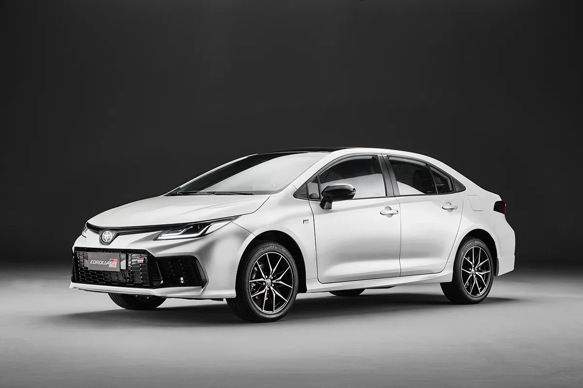 Já a versão GR-S acrescenta teto solar elétrico, ar-condicionado digital Dual Zone, faróis e lanternas de LED, carregador sem fio para celular, Toyota Serviços Conectados, Alerta de Ponto Cego (BSM) e Sensor de Reconhecimento de Tráfego Traseiro (RCTA). Por sua vez, as configurações Altis Premium incluem acabamento interno com revestimento exclusivo nas cores bege e marrom, banco do motorista com regulagem elétrica de oito posições e retrovisores externos com rebatimento automático.
