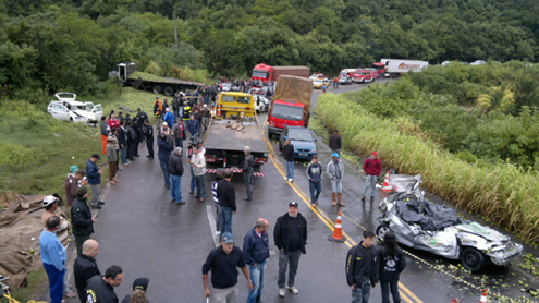 Dois jornalistas do Grupo Bandeirantes morrem e três do Grupo RBS ficam feridos em um acidente envolvendo sete veículos e um caminhão na Rodovia RS-122, em Farroupilha, no Rio Grande do Sul, por volta das 6 horas da manhã desta sexta-feira. De acordo com a Polícia Civil do Estado, as vítimas estão sendo atendidas em hospitais da região.