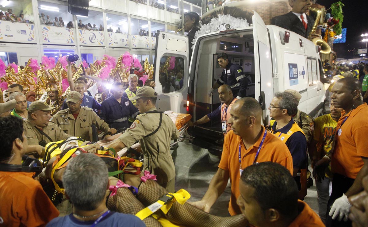 Quatro acidentes com carros alegóricos, um no primeiro dia de desfile e três no segundo, fizeram deste um carnaval atípico e dramático para as escolas de samba do Grupo Especial do Rio de Janeiro. Os dois dias de apresentação somaram ao menos 32 feridos. Na madrugada de terça-feira (28), parte da estrutura de um carro alegórico da Unidos da Tijuca desabou no começo do desfile da escola, e pelo menos 12 ocupantes do carro ficaram feridos, um com suspeita de traumatismo craniano e outro, de traumatismo abdominal.
