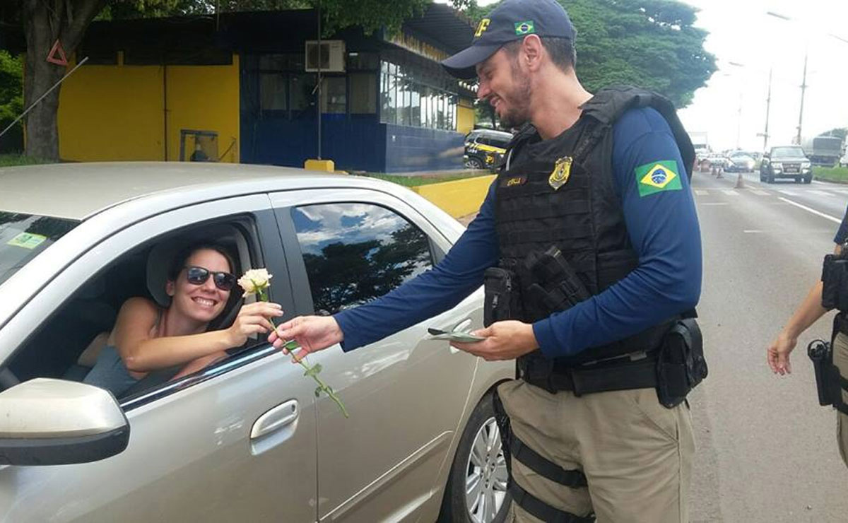 Policiais rodoviários federais entregaram flores às mulheres que transitavam pela BR-376 em Marialva, na região norte do Paraná. Os agentes da PRF realizaram dezenas de abordagens em uma ação especial para o dia da mulher.
