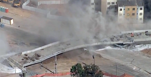 Foi implodida na manhã deste domigno (14) a alça norte do Viaduto Batalha dos Guararapes, na região da Pampulha, em Belo Horizonte. A estrutura estava interditada desde julho passado, quando outra alça do viaduto desabou sobre a Avenida Pedro I, matando duas pessoas e deixando 23 feridos. A implosão ocorreu às 9 horas e demorou poucos segundos.