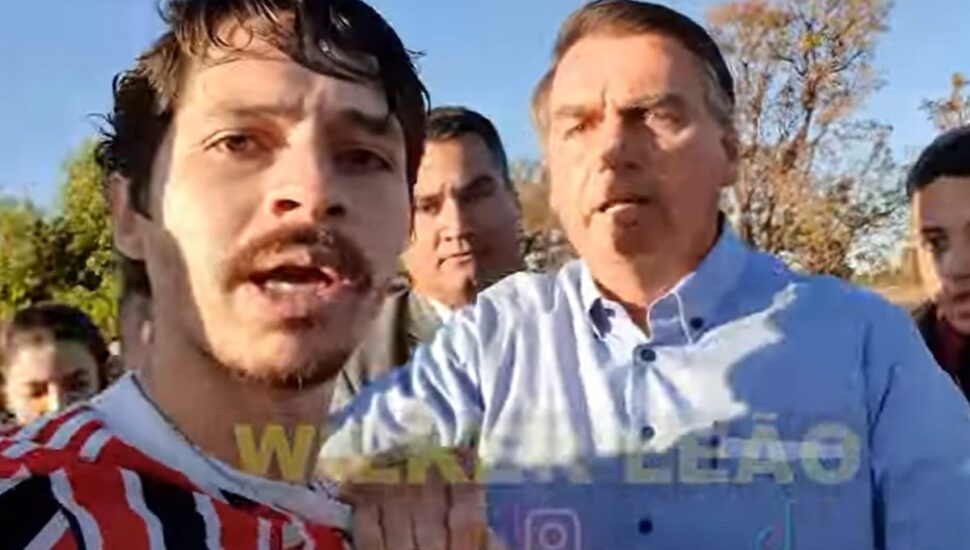 Enquanto eles falavam, apoiadores se queixavam do youtuber. Pediam que parasse, para que pudessem fazer selfies, e chamavam-no de “inconveniente”. Logo depois, Bolsonaro encerra a conversa e vai embora.
