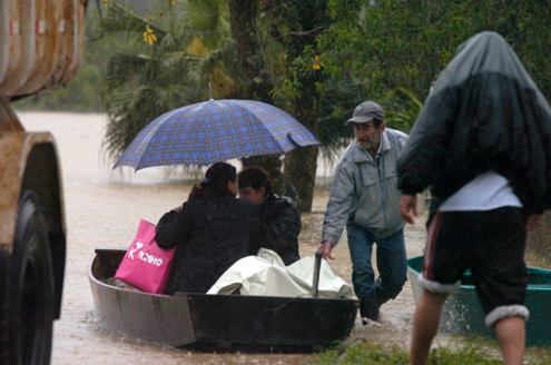 Em Itajaí, no litoral catarinense, a Defesa Civil alertou a população para os estragos com a enchente, que poderão ser maiores que os registrados na catástrofe de 2008, quando mais de 130 pessoas morreram, a maioria atingida por deslizamentos de terra.