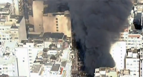 Um incêndio de grandes proporções atinge uma loja de material de festa na Avenida Nossa Senhora de Copacabana, número 616, entre as ruas Figueiredo Magalhães e Santa Clara, na zona sul da cidade. O prédio de três andares é comercial e os andares superiores são usados para estoque de material da própria loja. Ainda não há informações sobre feridos.
