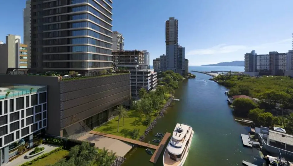 A escolha da área reflete uma leitura antecipada do território. “Quando o meu esposo, o João Conhaqui, comprou esse terreno, o rio não era navegável, não havia a marina, não havia o píer ainda. Ele teve a visão de que esse lugar se tornaria um local único, pela conexão com o mar, trazendo essa característica náutica. Ele foi visionário, isso ainda em 2021”, relata Paula Gessele Conhaqui, vice-presidente da Gessele Empreendimentos.