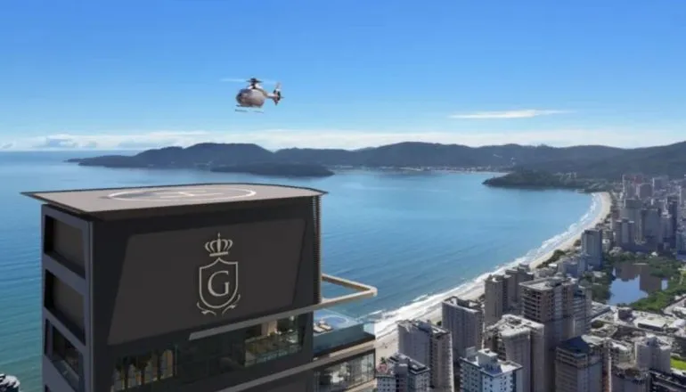 No topo da torre, o Sky Place concentra parte da experiência proposta. O espaço reúne piscina de borda infinita, vista panorâmica de 180 graus e espelho d’água com espreguiçadeiras em estilo flutuante. O projeto inclui ainda boate integrada e heliponto homologado, sendo o único residencial em Itapema com essa estrutura, de acordo com a Gessele. Ao todo, o empreendimento destina mais de 3 mil metros quadrados ao lazer.