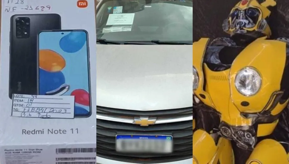 A Receita Federal encerra nesta quarta-feira (28) o leilão de itens apreendidos no porto de Santos. No total, há cem lotes, com smartphones da Samsung e Xiaomi, carros, um pedalinho e uma fantasia de Bumblebee, um dos principais robôs da franquia Transformers.