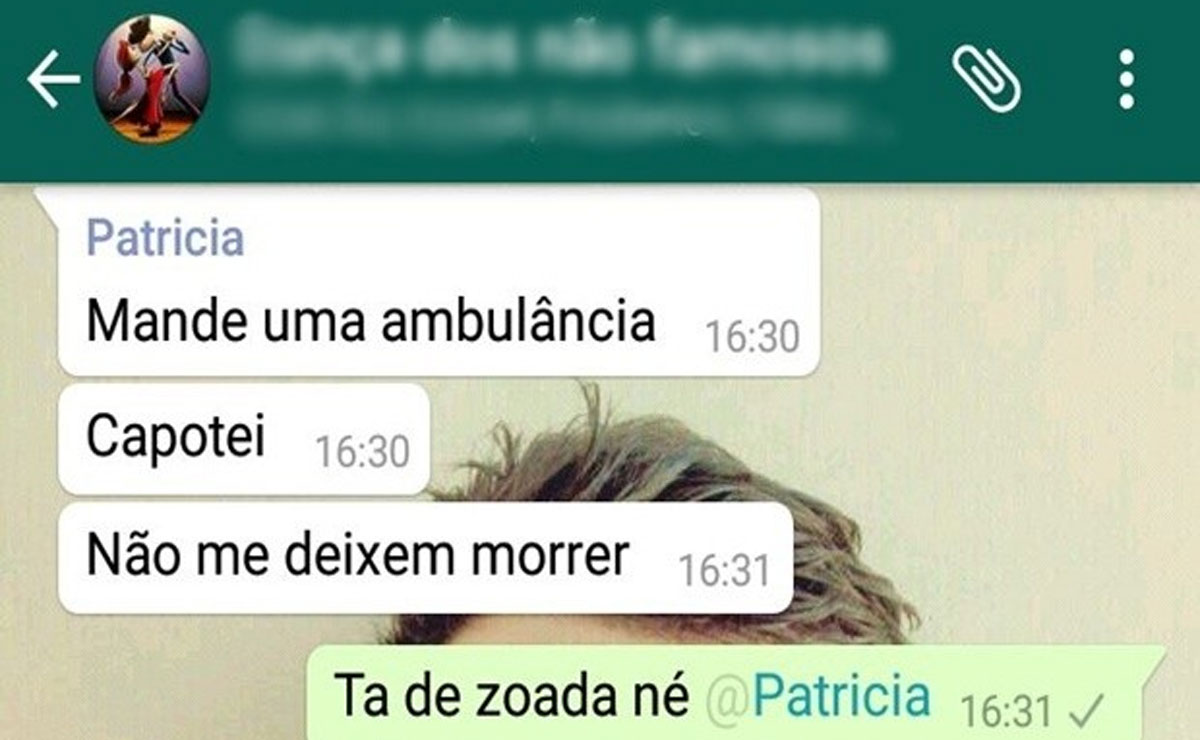 “Eu não tinha condições psicológicas para ligar para o resgate. Liguei para o meu ex-marido e pedi uma ambulância. Como demorou uma eternidade, resolvi mandei ajuda para as minhas últimas conversas do aplicativo”, explicou Patrícia. No primeiro momento os amigos da acidentada pensaram se tratar de uma brincadeira, mas uma foto de dentro do carro enviada por ela reforçou o pedido de ajuda.