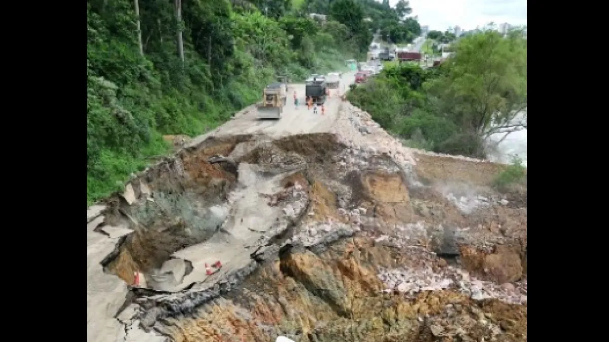A rodovia está interditada deste a última quarta-feira (14). De acordo com autoridades locais, a pista cedeu no km 143, próximo ao trevo de acesso ao Bairro Canoas, em Rio do Sul. O município fica na região do Vale do Itajaí.