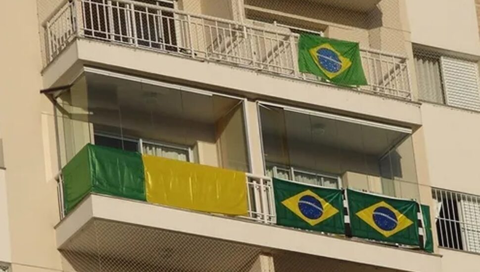 Pouco depois de instalar a bandeira do Brasil de 2,80 metros por 1,80 metro na varanda do apartamento, o técnico de informática Julio Zanatto recebeu a informação de que o item poderia render a ele uma multa de R$ 600 do condomínio em que vive em São Paulo –quatro vezes mais que o preço do item.