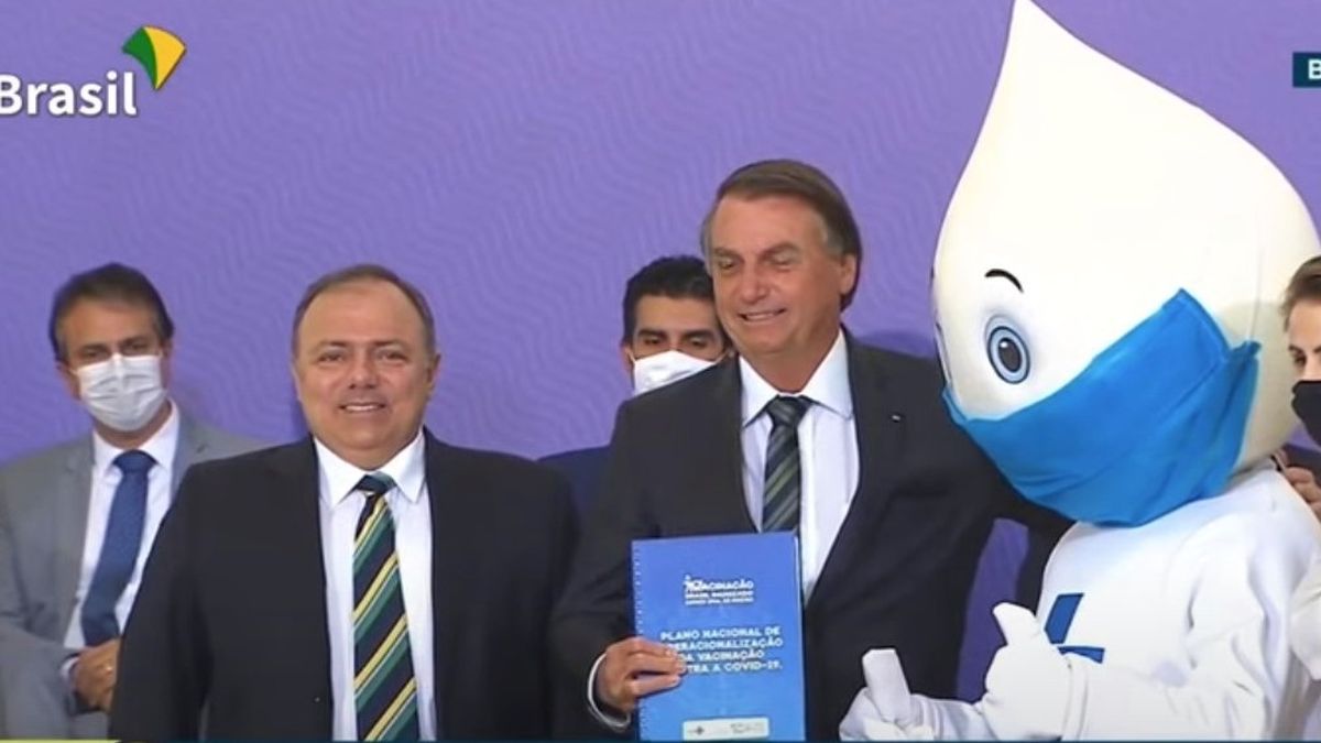 O presidente Jair Bolsonaro e o ministro da Saúde, Eduardo Pazuello, apresentaram na manhã desta quarta-feira (16), o plano de vacinação contra a covid-19. Veja em vídeo, a solenidade de apresentação do plano.