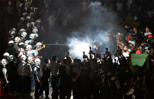 Logo depois, os manifestantes tentaram invadir o Itamaraty e foram contidos pela polícia.