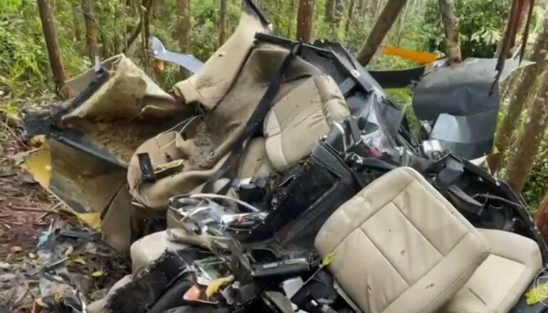 Os corpos das vítimas estavam nos arredores da aeronave, que se destroçou com a queda, segundo a PM. Entre os passageiros da aeronave estavam Luciana Rodzewics, de 46 anos, e sua filha, Letícia Rodzewics Sakumoto, de 20 anos. Além delas, estavam no helicóptero o piloto (identificado como Cassiano Teodoro) e um amigo da família (Rafael Torres).