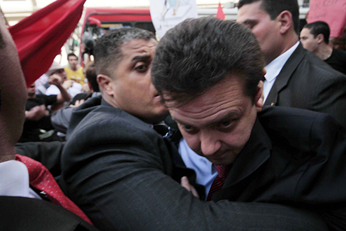 Uma pessoa ficou ferida durante tumulto entre manifestantes e policiais militares, em frente à Catedral da Sé, no centro de São Paulo, na manhã de hoje, dia de aniversário da capital paulista. O protesto “Basta de Trevas na Luz e em São Paulo”, com cerca de 200 pessoas, segundo informações da Polícia Militar (PM), ao contrário do levantamento de um dos organizadores do ato, o movimento Luz Livre, que contabilizou 700 pessoas no local, começou por volta das 8 horas.