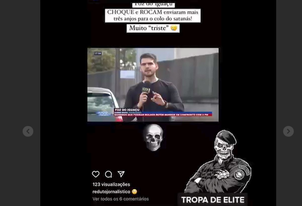 “Tem gente que não gostou muito. Talvez se eu estivesse do lado de bandido e falando mal da nossa polícia (violenta, truculenta e opressora) iriam curtir. Nunca foi tão fácil escolher um lado. Viva à gloriosa PMPR. Que o bem vença o mal”, disse em um stories no seu Instagram. “Obrigado a todos que enviaram mensagens, 99% positivas. Isso demonstra o quanto o brasileiro está farto da criminalidade”.