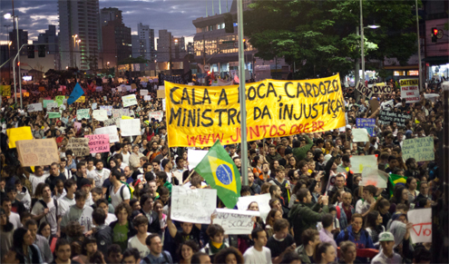Mobilizados em todo o Brasil por meio das redes sociais, manifestantes têm saído às ruas nas principais capitais e reivindicado, entre outras causas, a redução no valor das passagens do transporte coletivo. Os chamados na internet clamavam por uma paralização em todo o país e chegou a contar com o apoio de famosos como a atriz Thammy Miranda e do guitarrista do grupo Rage Against the Machine, Tom Morello, que se mostraram favoráveis à onda de protestos.