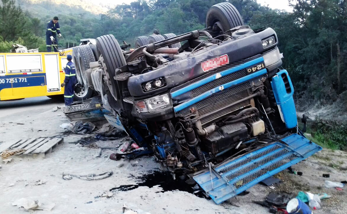 Três ocupantes estavam no caminhão no momento do acidente. Um deles não resistiu e morreu. Outro ficou com ferimentos graves e o terceiro com ferimentos leves. O homem morto foi indicado como motorista pelos outros dois ocupantes da cabine.