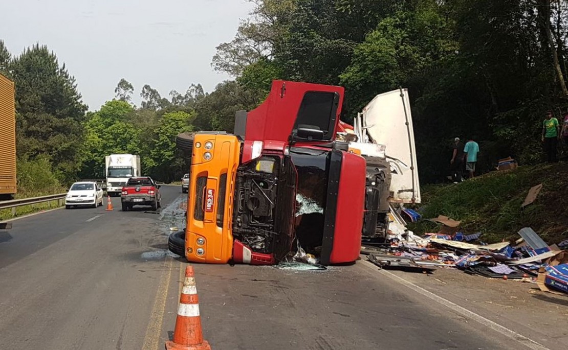 - Caminhão tomba na BR-476 e deixa pista bloqueada
