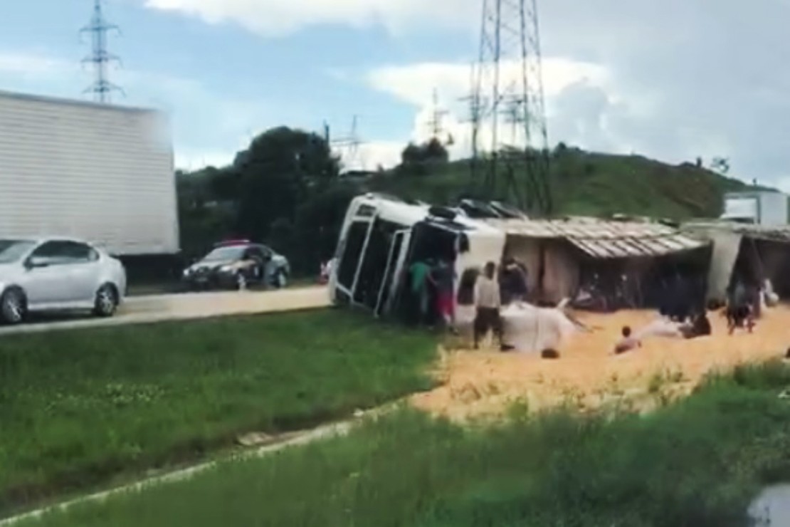 O acidente envolvendo uma carreta que transportava soja no quilômetro 598 da BR-376, próximo à empresa New Holland, na Cidade Industrial de Curitiba, foi flagrado por um motorista que trafegava logo atrás. O tombamento aconteceu por volta das 15h40 desta terça-feira (27), quando o caminhão virou no canteiro central. Parte da carga se espalhou pelo asfalto da pista sentido São José dos Pinhais e no canteiro central da rodovia.