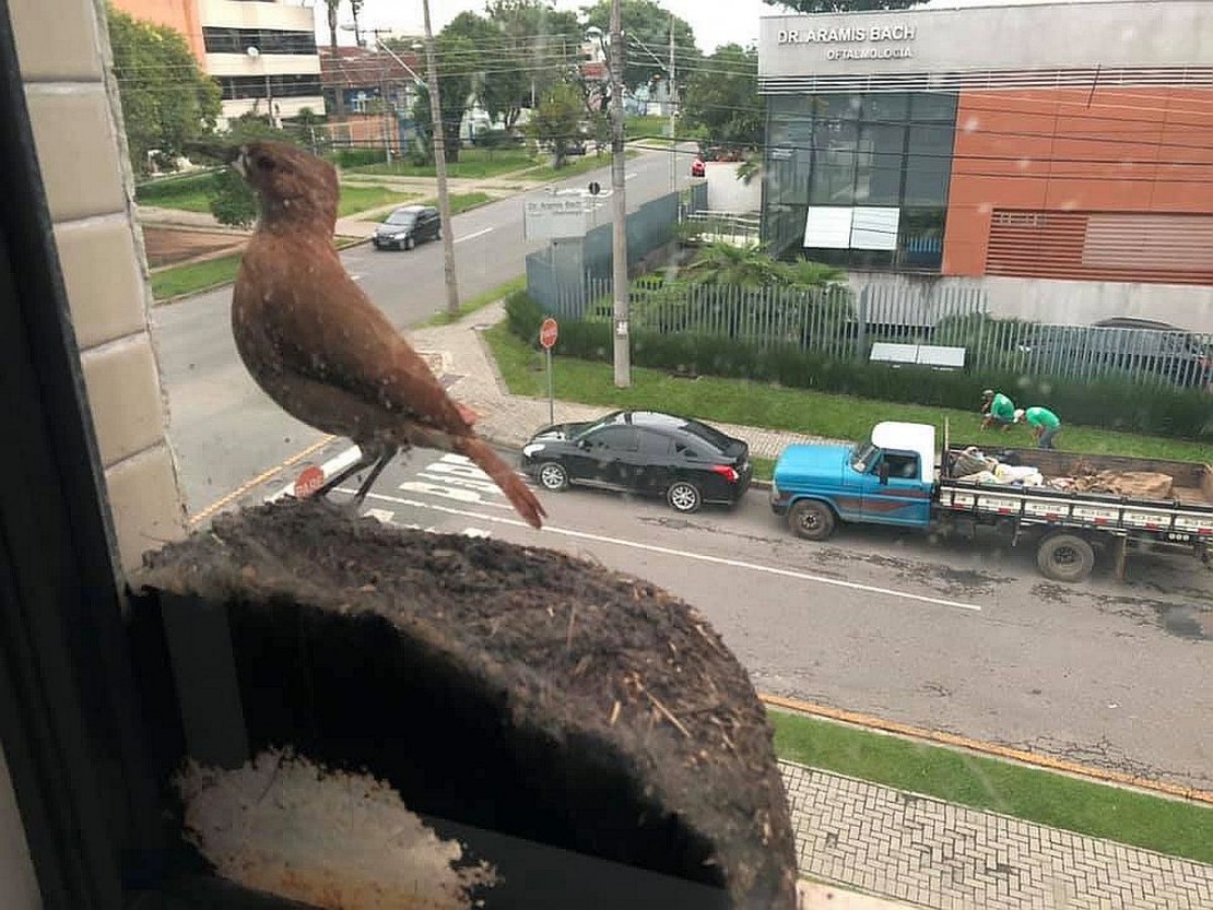 O flagra foi feito pelo médico Lúcio Erlund, no bairro Seminário. O joão-de-barro está há dias construindo seu barraco na soleira da janela do Instituto do Joelho e Ombro, consultório onde Erlund atende. “A natureza ‘invade’ a cidade. João de Barro e sua esposa ‘Joana’, se instalam em meu consultório. Construção civil a todo vapor”, postou o médico.