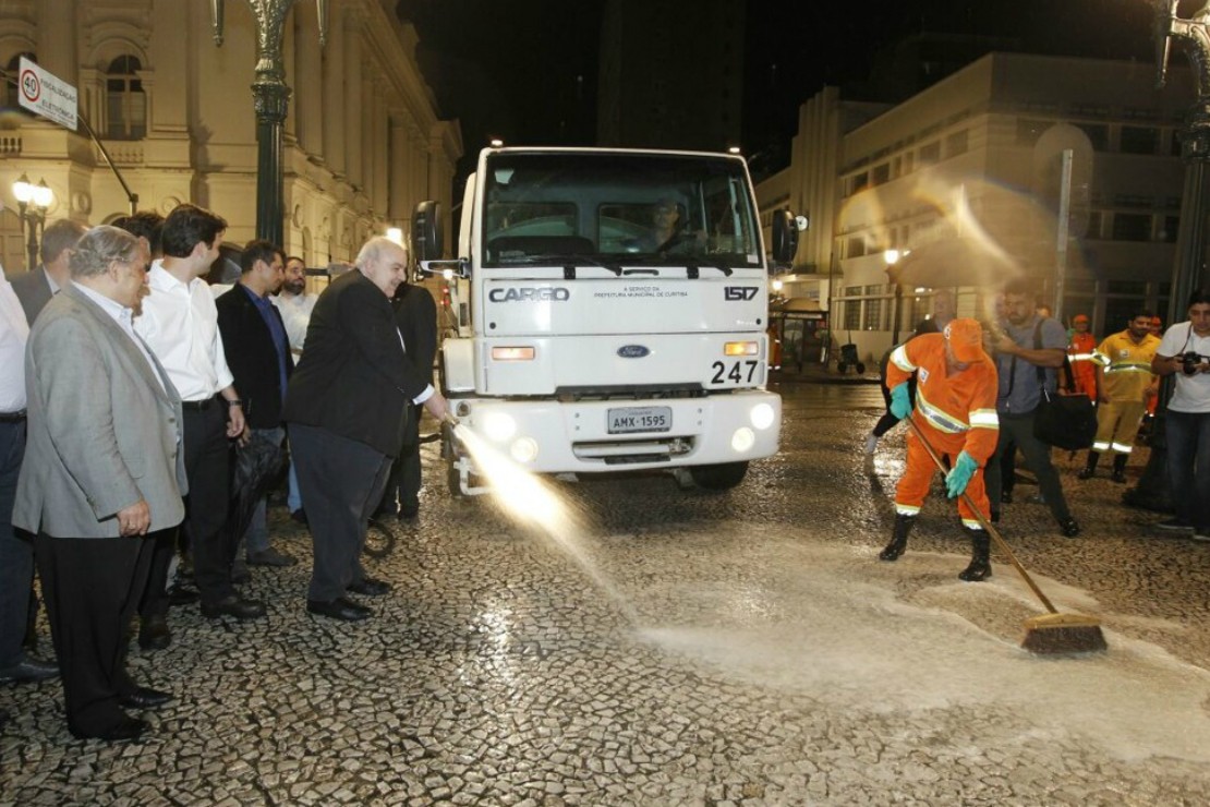 A ideia da prefeitura é fazer um mutirão de limpeza uma vez por mês na Rua XV. A ação também deve ocorrer uma vez por semana em outros pontos da capital. Os próximos deverão ser na Jesuíno Marcondes, Comendador Araújo e a Barão do Rio Branco. “Nós vamos lavar cada calçadão uma noite por semana de maneira que, uma vez por mês, os cinco ou seis calçadões do Centro serão limpos”, afirmou Greca.