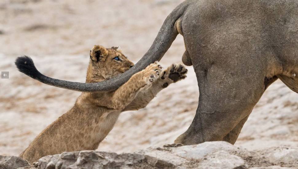 A foto campeã feito em Botsuana pela fotógrafa Sarah Skinner. A imagem é essa que abre a matéria e mostra um leão filhote “dando o bote” no seu pai. A legenda da foto, já traduzida, é: “Agarre a vida pela…” (“Grab Life by the…”). Segundo os organizadores, o concurso deste ano teve mais de 4 mil inscrições de 68 países.