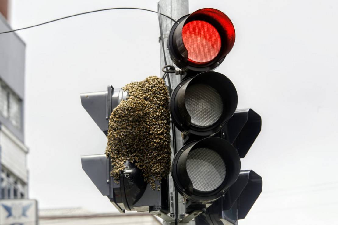 Um enxame de abelhas surgiu em um semáforo da Avenida Sete de Setembro, no Centro de Curitiba, assustando pedestres e moradores da região do Mercado Municipal. O local foi isolado no fim da manhã desta terça-feira (12) pela Guarda Municipal (GM). As abelhas já teriam sido avistadas pela população no entorno do Mercado na segunda-feira (11).