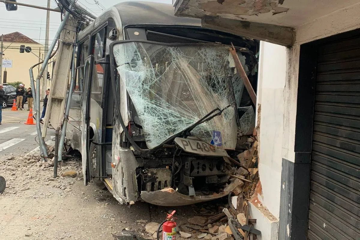 Após a batida, o coletivo colidiu contra um poste e a estrutura de um casarão histórico. O trânsito ficou totalmente bloqueado para o resgate, e o motorista sofreu graves ferimentos nos pés.