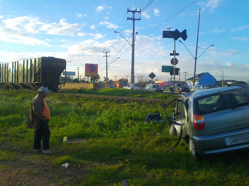 Uma colisão entre um carro e um trem na Avenida João Leopoldo Jacomel, em Pinhais, na Região Metropolitana de Curitiba, deixou um homem com ferimentos graves na manhã desta segunda-feira (15).