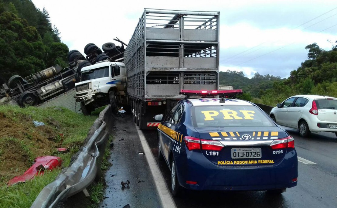 Uma pista foi liberadas às 11h30 e a liberação total aconteceu por volta das 13h30. De acordo com informações da Polícia Rodoviária Federal (PRF), o tombamento aconteceu depois que o veículo colidiu com outro caminhão que também trafegava pela rodovia. Ninguém ficou ferido no acidente.
