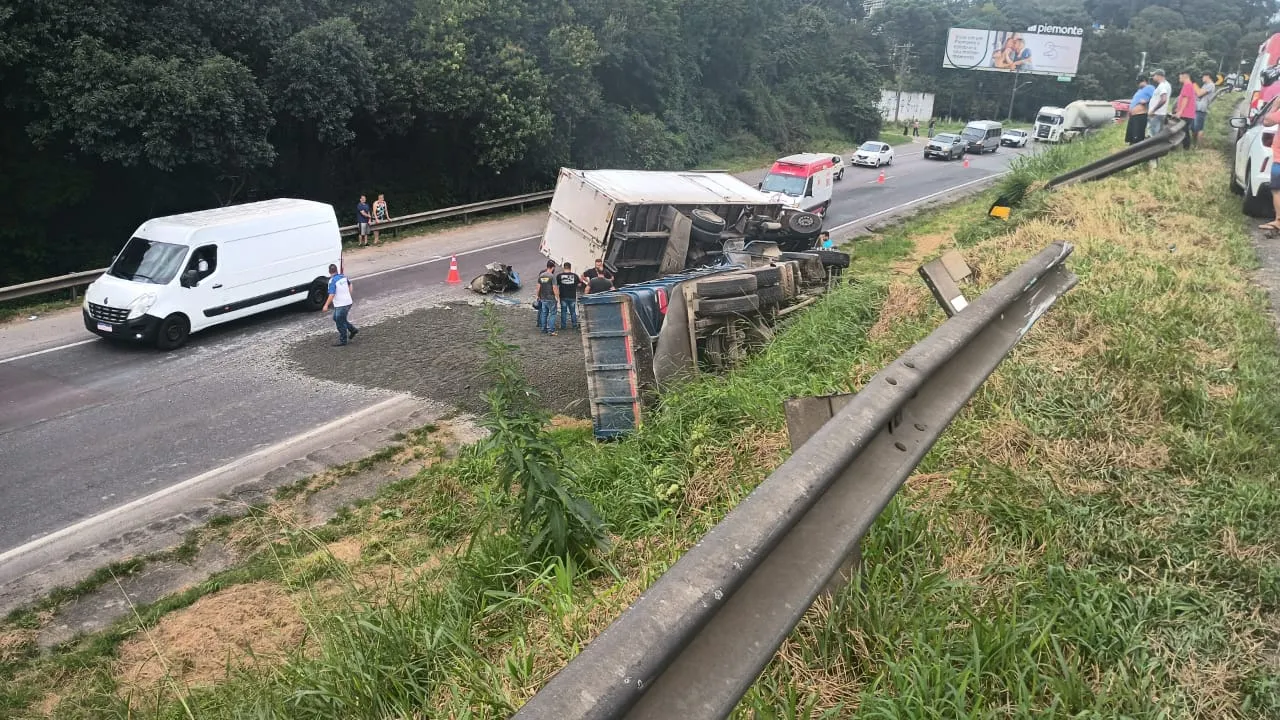 Em atualização às 16h24, a PRF informou que a pista sentido Curitiba foi liberada. O trânsito está lento no local.