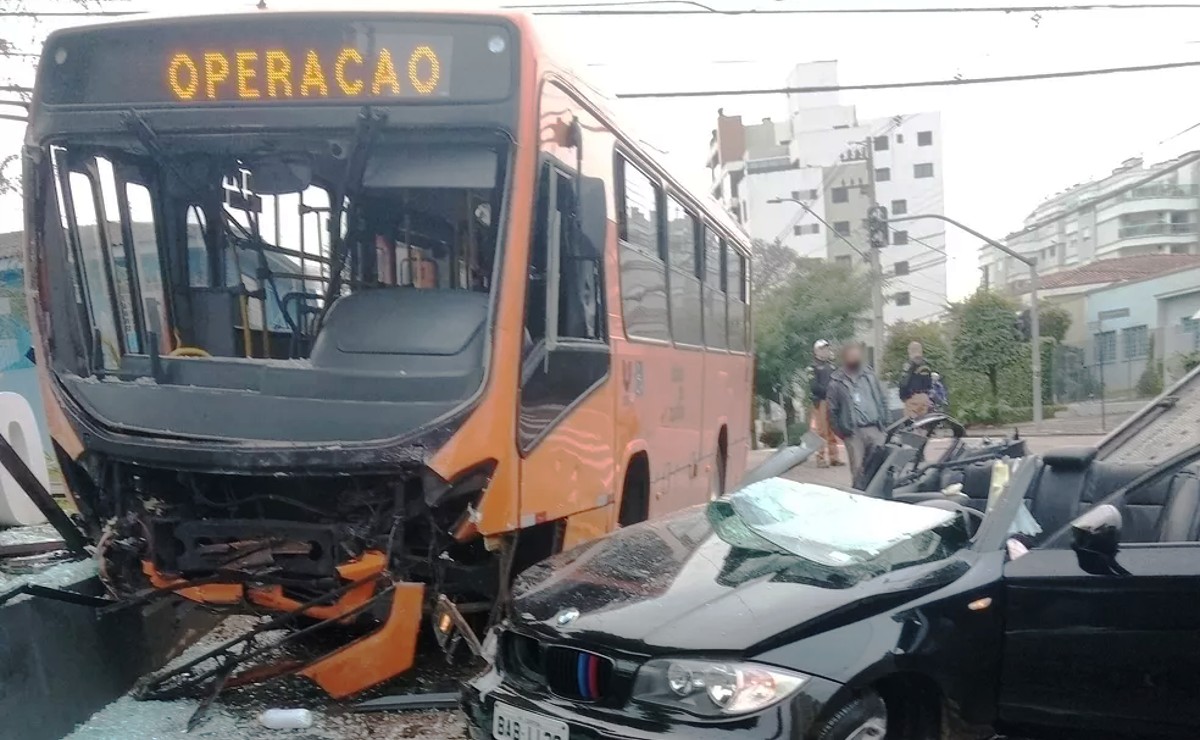Um acidente envolvendo um veículo BMW e um ônibus do transporte coletivo deixou quatro pessoas feridas em Curitiba, na madrugada deste domingo (5). A colisão foi no cruzamento das ruas Fernando Simas e Padre Agostinho, no bairro Mercês. A Delegacia de Delitos de Trânsito (Dedetran) está apurando o caso, e informações preliminares apontam que o motorista do veículo de luxo estaria embriagado.
