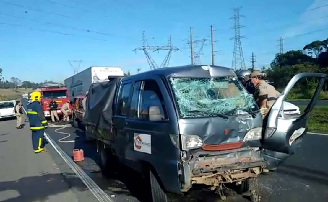 Três pessoas ficaram feridas num acidente entre uma minivan e um caminhão na manhã desta quinta-feira (25). A colisão aconteceu na BR-476, a Rodovia do Xisto, no bairro Tatuquara, em Curitiba, depois de uma freada brusca.