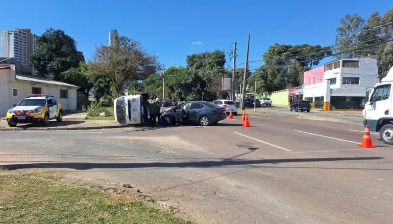 No momento do cruzamento, os dois veículos colidiram e a Kombi tombou com o impacto da batida. A frente do carro ficou bastante danificada.