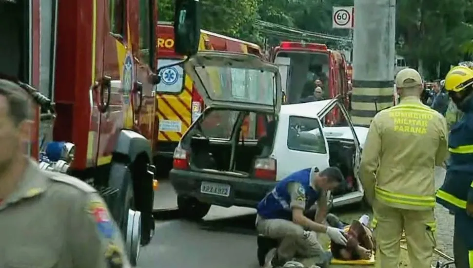 Um grave acidente registrado na manhã desta sexta-feira (17) deixou ao menos duas pessoas feridas e uma das faixas da Rua Monsenhor Ivo Zanlorenzi, no bairro Mossunguê, em Curitiba, interditada. Ao menos quatro viaturas dos bombeiros foram deslocadas para o atendimento às vítimas