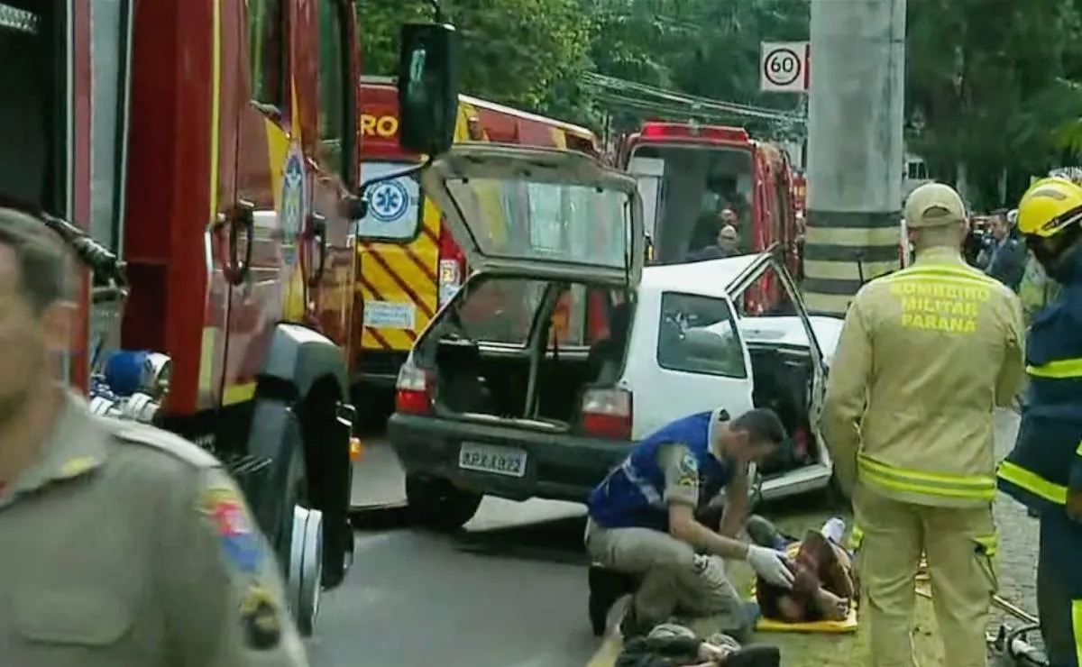 Um grave acidente registrado na manhã desta sexta-feira (17) deixou ao menos duas pessoas feridas e uma das faixas da Rua Monsenhor Ivo Zanlorenzi, no bairro Mossunguê, em Curitiba, interditada. Ao menos quatro viaturas dos bombeiros foram deslocadas para o atendimento às vítimas