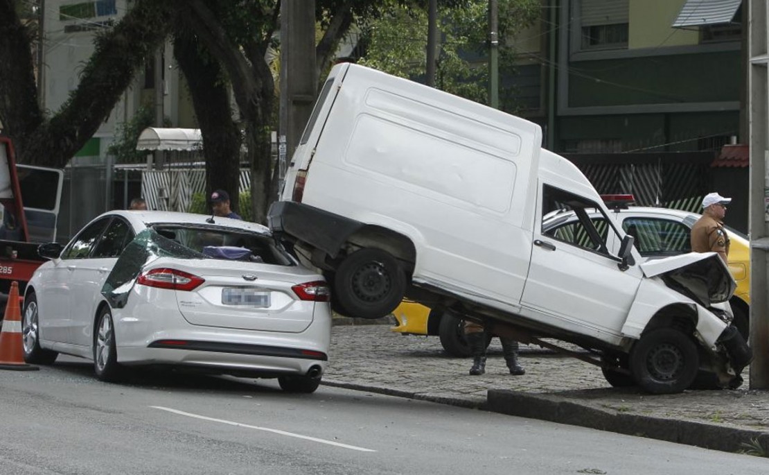 O acidente ocorreu por volta das 8h, perto do cruzamento com a Rua Ângelo Sampaio. Um dos veículos, uma Fiorino, colidiu contra um poste e acabou sobre um Fusion, o outro carro envolvido.