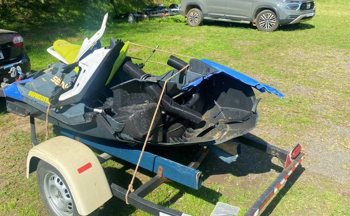 No local, a equipe do Corpo de Bombeiros verificou que o jet ski era conduzido pela mulher, e que as vítimas usavam colete na hora do acidente.