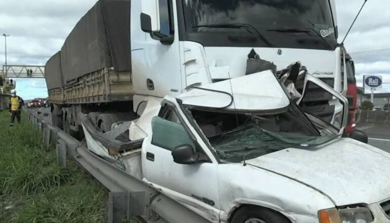 Um vídeo divulgado pela Policia Rodoviária Federal (PRF) mostra a destruição de uma caminhonete S10 branca após o acidente que vitimou o motorista, na última sexta-feira (14), no Km 66 da BR-277, em São José dos Pinhais, na Região Metropolitana de Curitiba (RMC). Um caminhão bateu no carro que estava parado fora da via e com o forte impacto, o condutor da caminhonete faleceu no local.