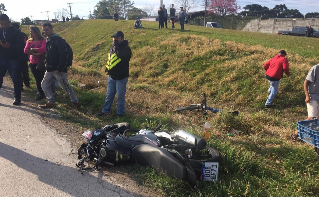 Um acidente entre uma motocicleta e um caminhão matou um rapaz e deixou outro gravemente ferido na tarde desta sexta-feira (19), no Contorno Sul (BR-376), em Curitiba. Lucas Padilha, 22 anos, pilotava a moto no momento do acidente e morreu após a queda. Já seu irmão, João Gabriel Padilha, 18 anos, estava na garupa e ficou gravemente ferido, sendo encaminhado ao Hospital do Trabalhador para atendimento. O acidente teria ocorrido por causa de uma tentativa de ultrapassagem da moto, pela direita do caminhão.