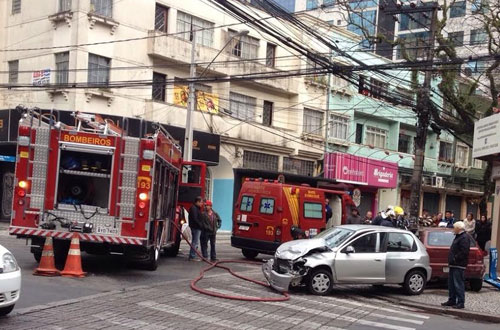 De acordo com os Bombeiros, o motorista do Gol contou que vinha pela Visconde do Rio Branco quando foi atingido pelo Celta, que vinha pela Vicente Machado. O Gol parou na parede de uma confeitaria.