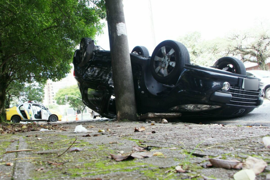 A colisão entre dois veículos terminou com duas pessoas feridas e um dos carros capotados no bairro Boa Vista, em Curitiba, no início da tarde desta segunda-feira (1). A polícia não sabe com certeza quem causou a pancada. O fato é que um dos motoristas furou o sinal vermelho. Um dos condutores abandonou o carro no local e foi embora.