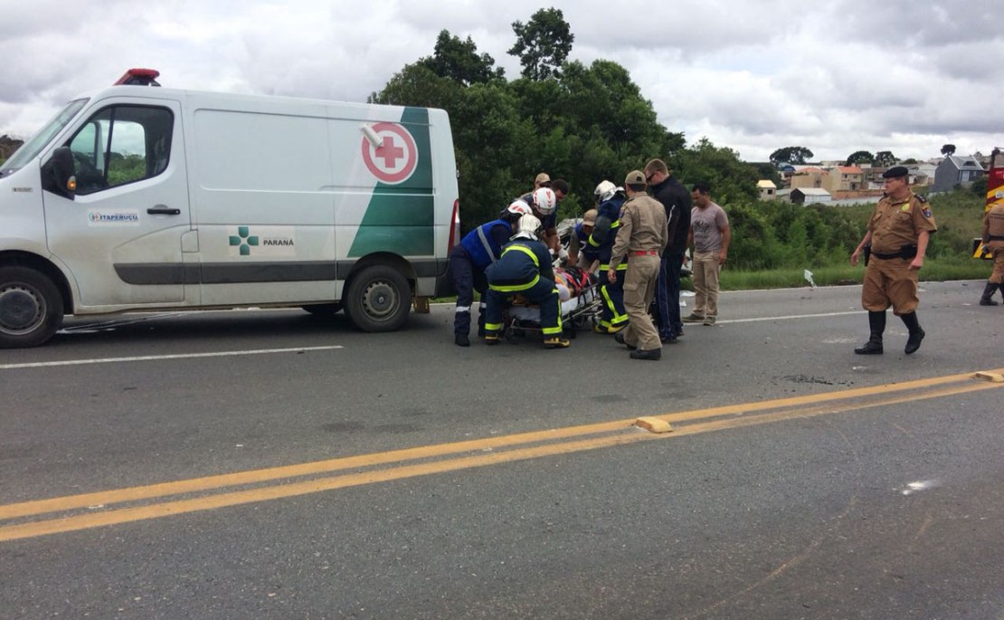 A colisão aconteceu pouco depois do meio-dia, na região do Contorno Norte que fica próximo a Avenida Manoel Ribas e a Rua Brasílio Cuman. Segundo a Polícia Rodoviária Estadual (PRE), o motorista da Saveiro bateu a frente do veículo contra o caminhão.