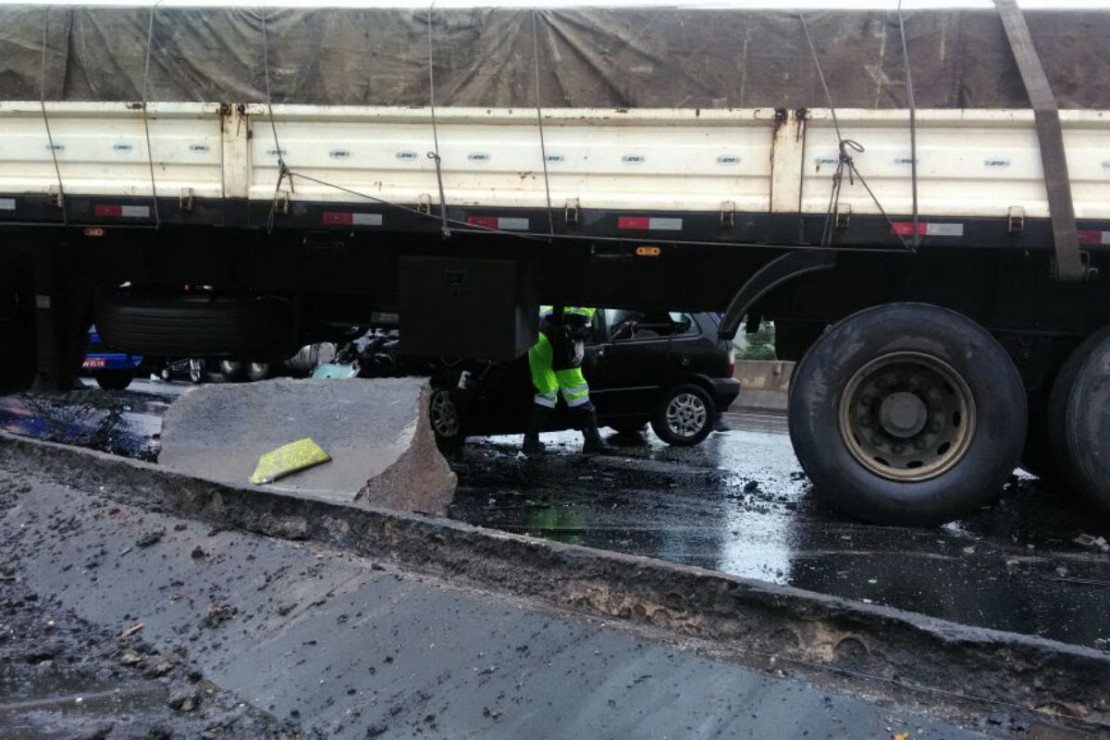 O caminhão acabou atingindo três carros. Uma pessoa acabou morta, quatro tiveram ferimentos leves e uma teve ferimentos graves. No momento a pista sentido Santa Catarina está totalmente bloqueada até a chegada o Instituto Médico Legal. Por conta da gravidade do acidente, o trânsito é intenso e chega a quatro quilômetros. A recomendação da PRF é que os motoristas evitem o trecho.